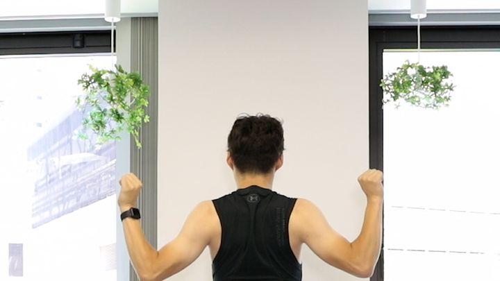 背中を動かす意識が分かりにくい人は、「ウエイトではなく肘を後ろに引っ張る」「肩甲骨を寄せる」という意識の方が分かりやすいかもしれません。