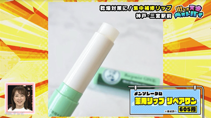 これから職場の同僚たちと昼飲みをする女性は、ロート製薬のメンソレータム薬用リップ リペアワンがベストバイ。唇を集中補修するこのリップは、あまりにも良すぎて「(買うのは)3〜4回目」とのこと。一緒にいた同僚の女性も、同じリップを持っており、「10本は使っている」そうです!