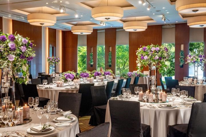 ホテル内には2つのバンケットがあり、ゲストの人数によってセレクトが可能。シンプルでありながらラグジュアリーな空間で、理想のウエディングを実現できます。このほかホテル内にある2つのレストランでのパーティにも対応。