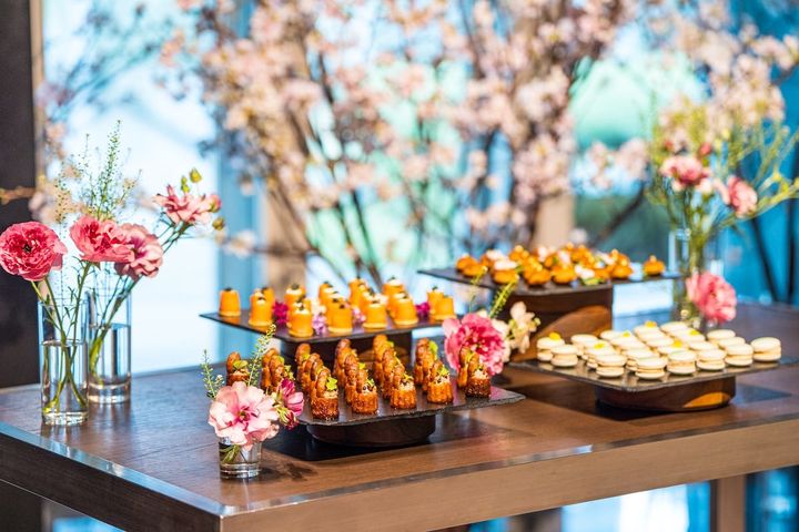 ゲストが思い思いにスイーツを選べるデザートビュッフェは「コンラッド東京」でも人気の演出。専属のパティシエが腕によりをかけて作り上げるケーキがずらりと並ぶテーブルは写真映えもばっちり。