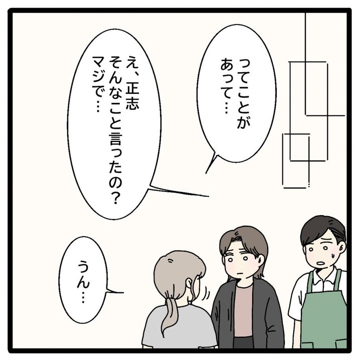 美沙ちゃんが仕事中の裕二さんも呼んで来てくれました。私は二人に、正志から離婚しようと言われたこと、聡子さんと再婚して総一郎さんと一緒に多田家を支えていくと正志が言っていたことを話しました。美沙ちゃんも裕二さんも「え、正志そんなこと言ったの?マジで・・」と驚いていました。私だってまだ信じられないのですから、2人が驚くのも当然です。