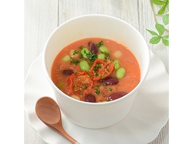 濃厚なトマトクリームに3種の豆と野菜を合わせた食べるポタージュスープ。