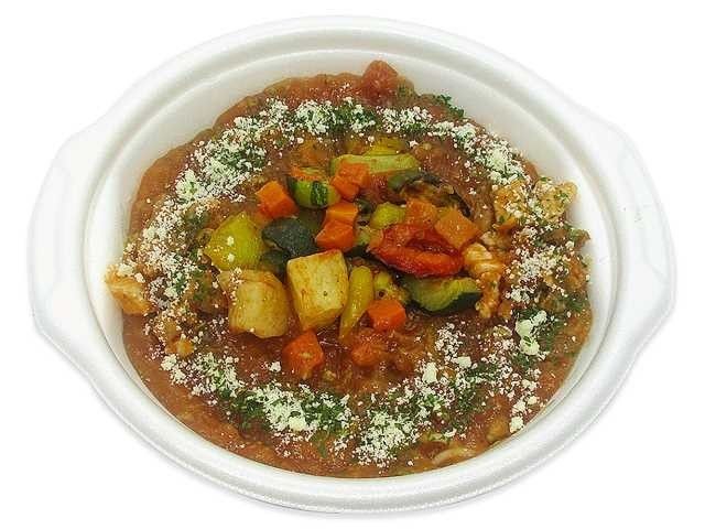 広島県産豚とグリル野菜を組み合わせた旨味のあるトマトスープパスタです。 カロリー:488kcal 【販売地域】島根県、広島県、山口県