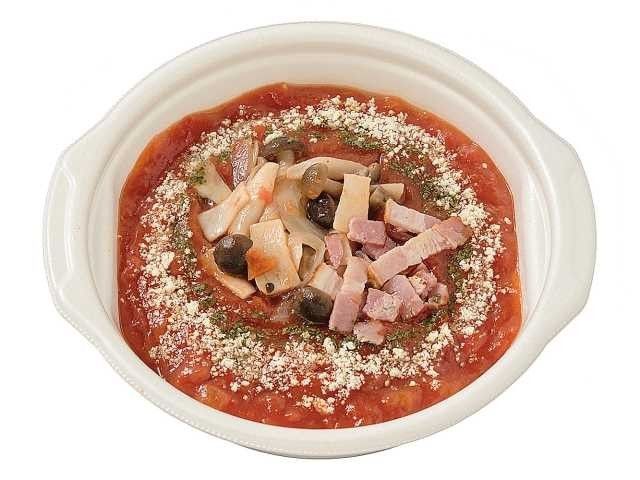 トマトの旨味や、ほどよい酸味が感じられるスープパスタです。しめじエリンギベーコン玉葱を盛り付けました。 カロリー:455kcal 【販売地域】茨城県、埼玉県、千葉県、東京都、神奈川県