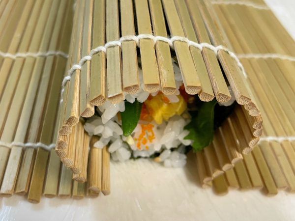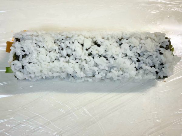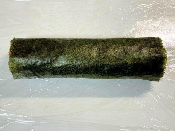 6)5)で巻いたものをもう一度海苔で巻きます。最後に巻きすで形を整えたら完成です。