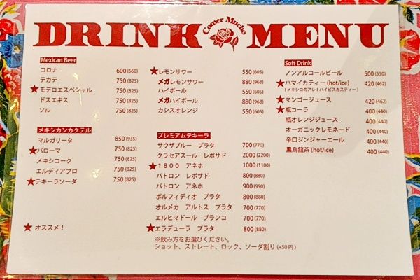 7種類あるタコスはどれもおいしそうで悩みます。ワカモレやタコライスなどの定番メキシカンフードはもちろん、ドリンクもメキシカンなものがたくさん!テキーラやビールも種類豊富で店主のこだわりが感じられます。