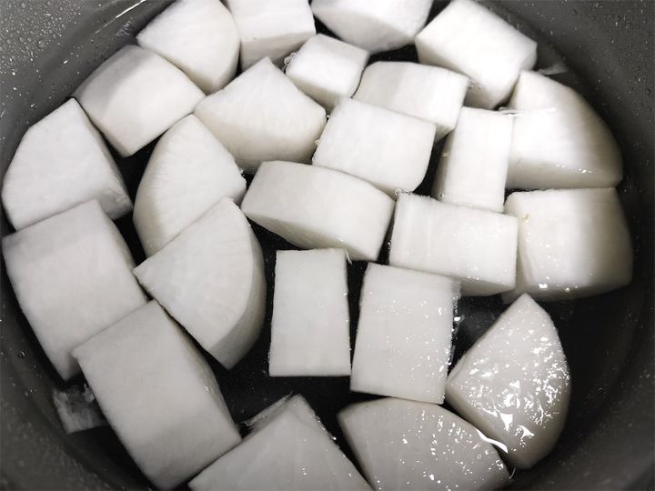 1. 鍋に大根とひたひたの水(分量外)を入れ、強火にかけます。
