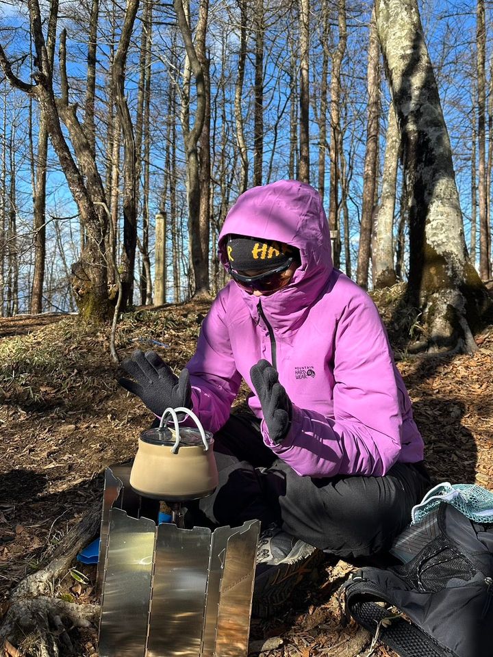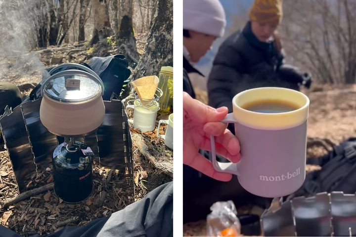 お湯を沸かして、山中で飲む熱々のコーヒーは最高! 一緒に登る友達に温かいものを食べてほしくて、バーナーやクッカーを持っていくことが多いですね」