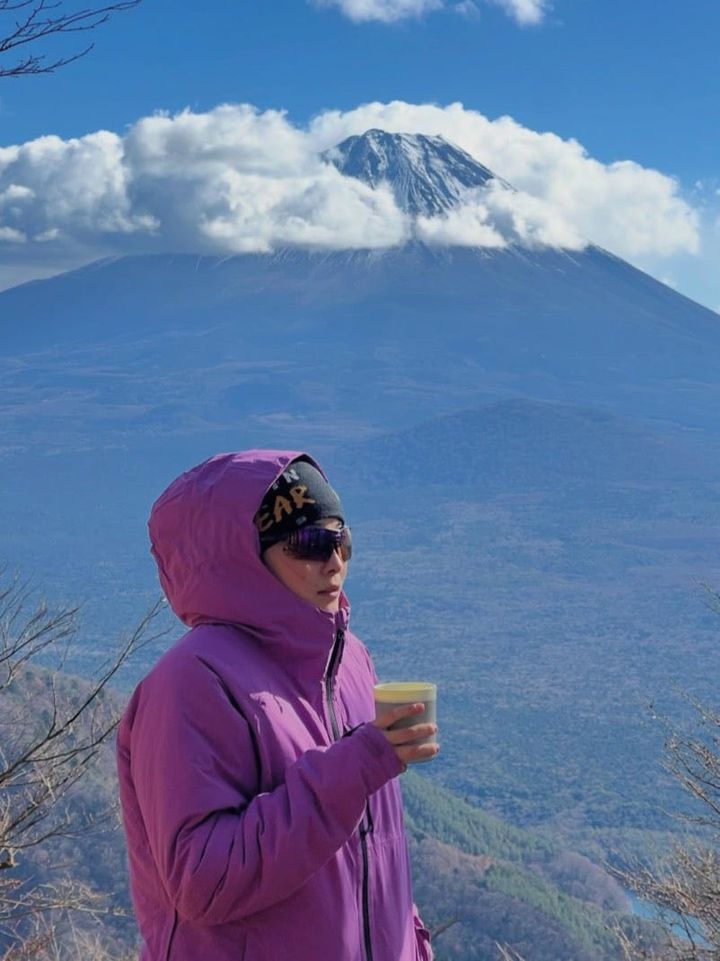 山頂ではプロテインで軽く栄養補給し、下山後は温泉で体を温めるのが定番だそう。