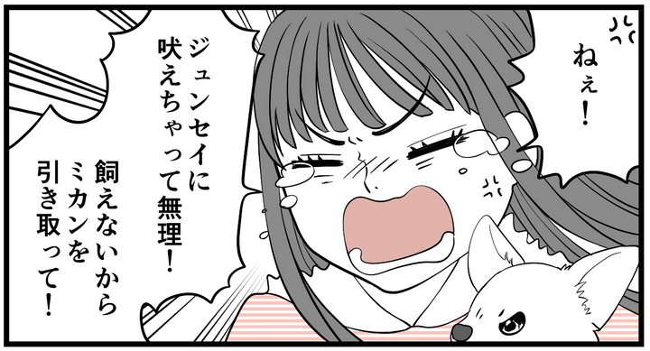 サナちゃんは毎週末ミカンを連れて、わが家へ戻ってきています。ミカンはジュンセイさんになつかないのだとか……。