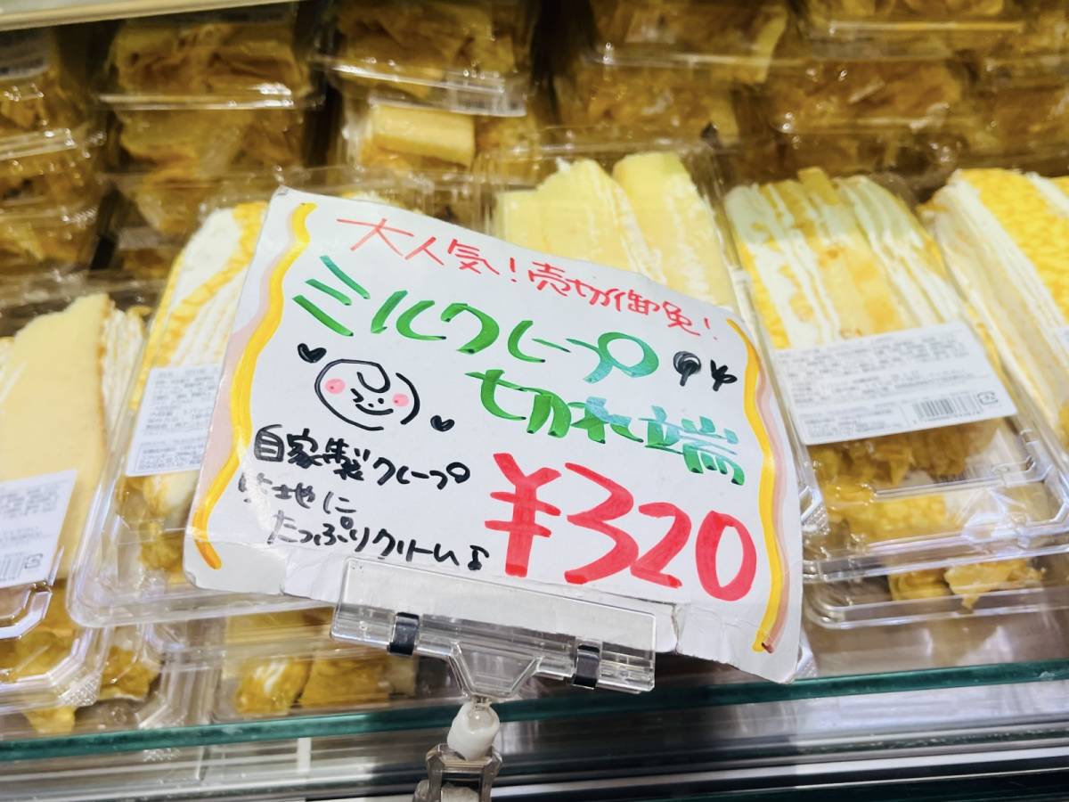 アウトレット店には通常の「しあわせミルクレープ」のほか、ショートケーキサイズのミルクレープ、そして本品の3種類が販売さていましたよ♪