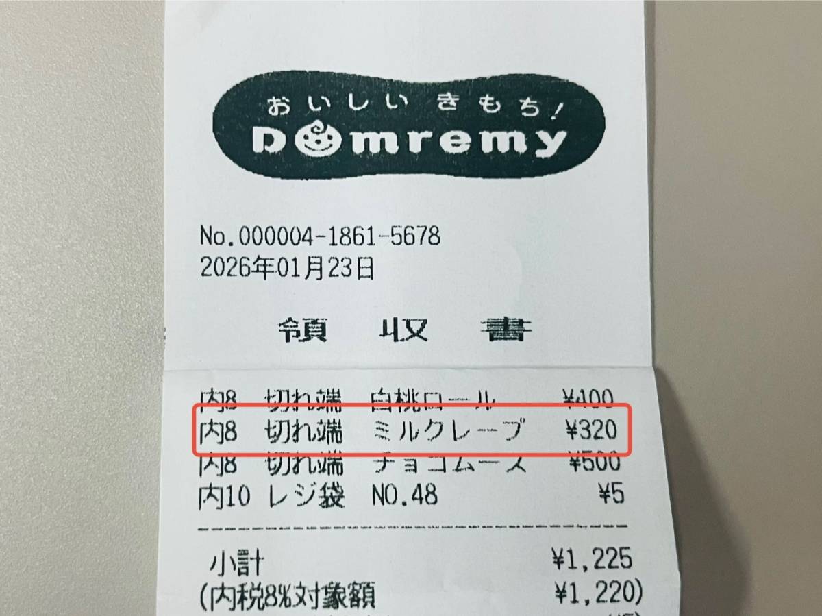 今回購入したのは、「切れ端ミルクレープ」です。
