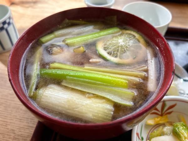 ねぎたっぷりの鴨汁! そして、右上の方にあるのが、なんと、「ライム」なんです。鴨汁にライムは珍しいのではないでしょうか?