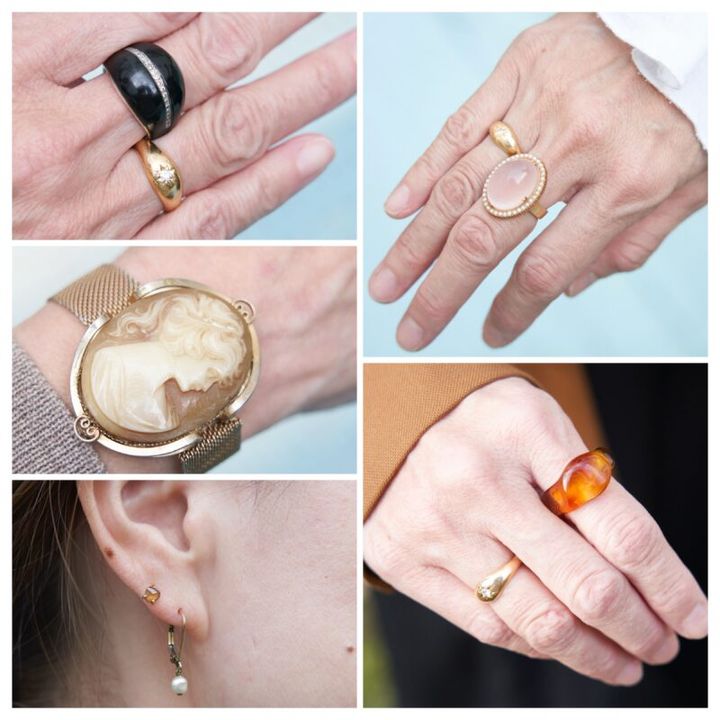 華奢なジュエリーで品よく輝きを アンティークのカメオブレスレット、韓国人作家のガラスリング、祖母の形見のローズクォーツ etc.