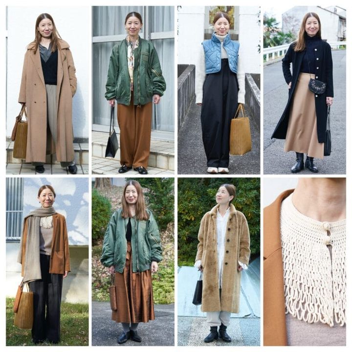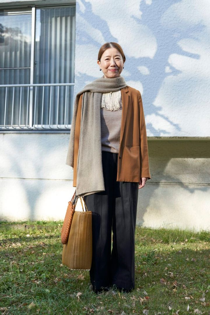 海外のアートピースや香りのブランドの企画展示や販売をする清水美里さん。アパレルメーカー、古着ショップ、食器ブランドなどでキャリアを積みました。「洋服が好きで、アンティークやヴィンテージなど古いものが特に好き。洋服も食器も色を合わせることが好きなんだと思います」と清水さん。骨董の器の美しさに魅せられて神楽坂(新宿区)の懐石料理店で働いていたことも。こうして身につけた「審美眼」と「絶対色感」は、日々のコーデにも活かされています。「キャラメル色が好きで選ぶことが多いですね」(清水さん)。ブラウン、グレー、カーキ、黒など、ワードローブの色は、すべて自然界に存在するもの。アンティークのつけ衿、カメオのブレスレット、リメイクしたジュエリーなどをプラスすると、上品な華やかさが際立ちます。