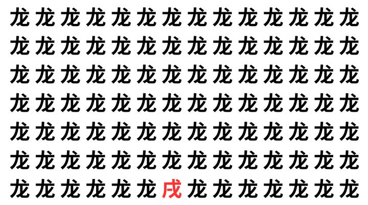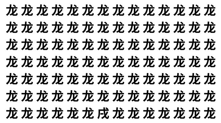 たくさんの「龙」の中に、よく似た別の漢字が1文字だけ隠れています。