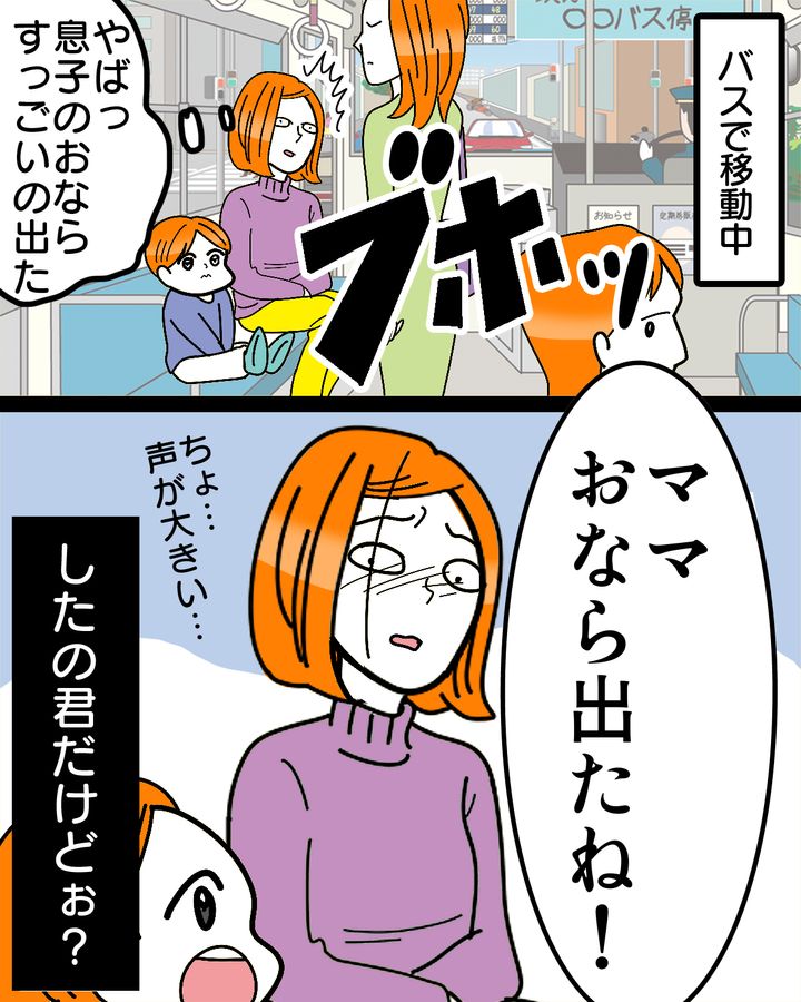 バスの中に鳴り響いた、驚くような音量の息子のおなら。ママも「やばっ」と思うほどの爆音だったのだそう。しかし息子ときたらとんでもない発言をしたのです。
