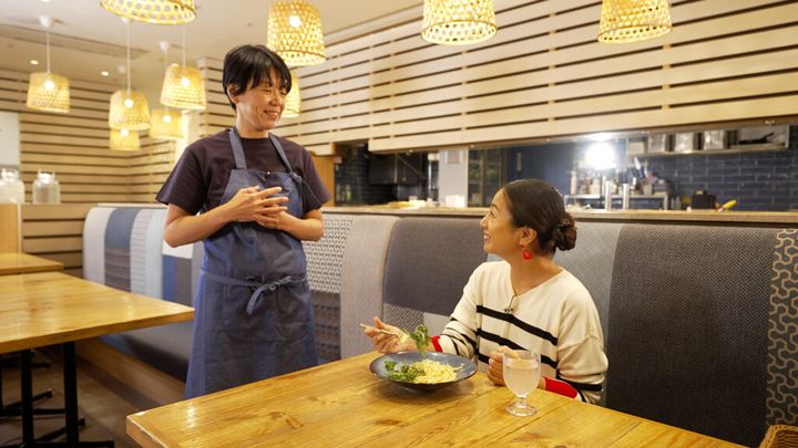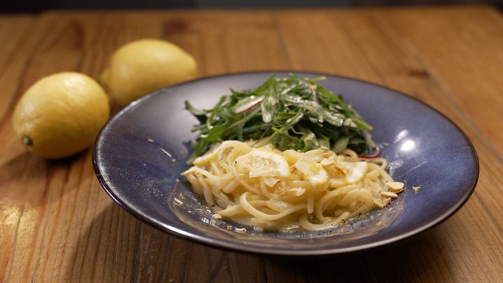 「淡路島の人と自然と食が大好き」と笑顔で話す三船美佳さんがやってきたのは、大阪市・梅田の商業施設にある、淡路島の食材にこだわったパスタ専門店。シェフの松永さんがサーブしてくれた一皿は、「森ファームのフレッシュハーブの島レモンオイル リングイネ」。「彩り鮮やかですね~!」と感激しながらパスタを口にした三船さんは、一口ほおばり「ん~!」と笑顔でサムズアップ。「まろやかで、口に広がる旨みがすごい」と感動の面持ち。味の決め手は、淡路島のレモンと塩で作る“塩レモン”。松永さんは「お塩もレモンも単体で食べると強い部分が出ちゃうんですけど、熟成させることで角がとれるというか、全体を調和してくれる」と教えてくれた。熟成させた塩レモンが、まろやかさを出し、料理のバランスを整えるのだ。