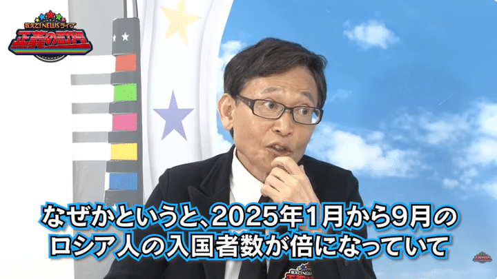 2025年1月から9月、日本に入国したロシア人の数が前年比で倍になっているというのだ。
