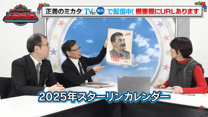 2025年の「正義のミカタ」年末SPに出演した際、番組内で2026年のプーチンカレンダーを見せていた中村氏だが、「実はスターリンカレンダーの方が迫力あったかな」と感じていた様子。