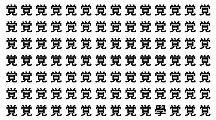 たくさんの「覚」の中に、よく似た別の漢字が1文字だけ隠れています。