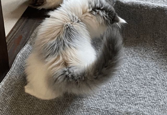 私が飼っているノルウェージャンフォレストキャット(オス)のエピソードです。 冬のある日、家の中が少し冷えていた夜のこと。 寝室をのぞいてみると、床に敷いてあるカーペットの端を自分でめくり、その中にすっぽり入り込んでいました。 まるで人間が布団にもぐるようで、顔だけひょこっと出してくつろいでいる姿がとても印象的でした。