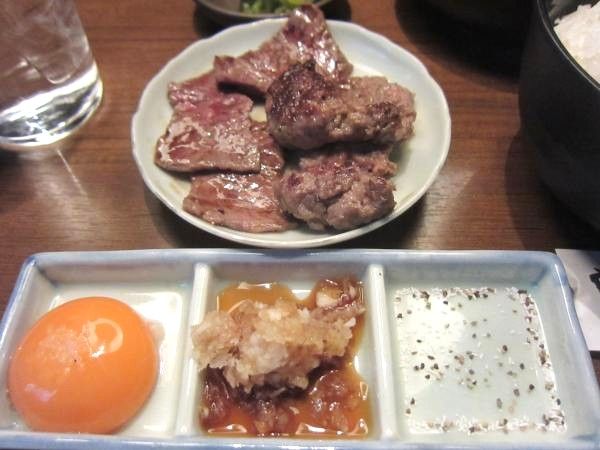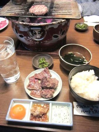 国産牛100%の粗挽き赤身肉を使用して、つなぎを使わずお肉だけ作っています。ご飯、スープ、小鉢が付いてきて(おかわり無料)で、お願いするとおかわりを持って来てくれます。