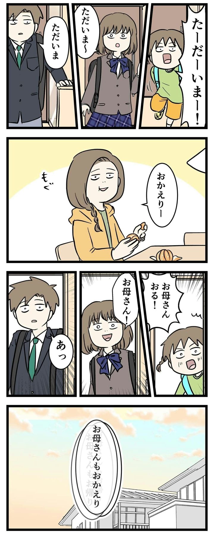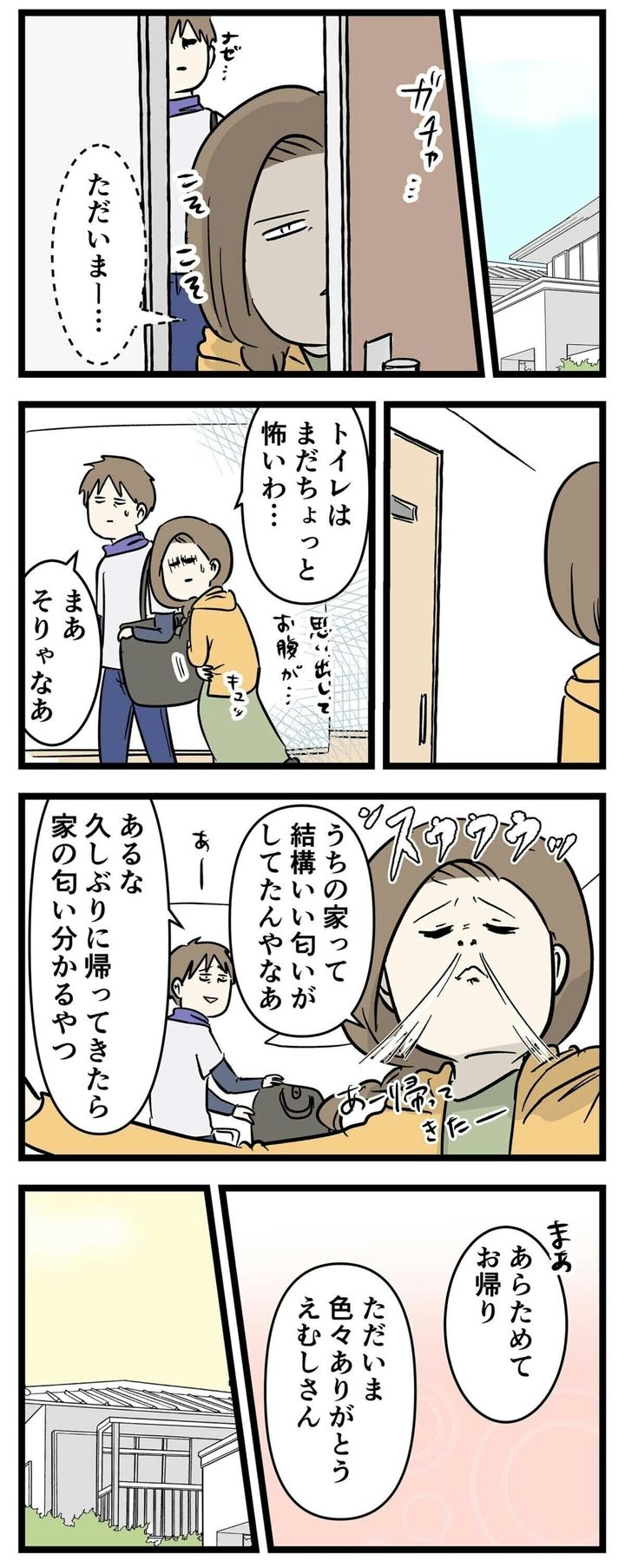 無事に退院し、一週間ぶりに自宅へと戻ったえむふじんさん。子どもたちとの「ただいま」「おかえり」というやりとりに、とっても温かい気持ちになりますね。