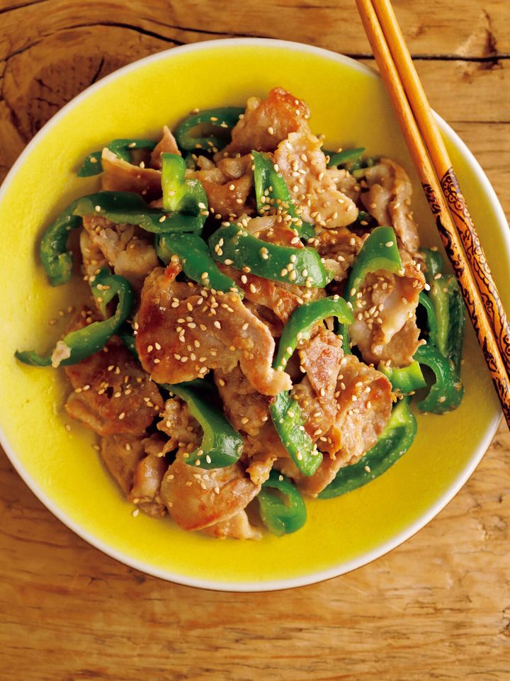 ピーマンは縦半分に切り、へたと種を除いて斜めに幅1cmに切る。フライパンに「下味肉」を広げてピーマンをのせ、ふたをして中火にかける。肉に焼き色がつくまで3分ほど蒸し焼きにする。ふたを取り、かるくほぐしながら1~2分炒める。器に盛り、白ごまをふる。