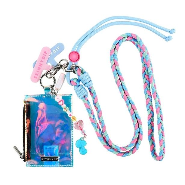 「IDケース」(3740円)は、配色がかわいいロープストラップに取り外し可能なクリアオーロラのジップケースがついた便利アイテム。ケースにはカードのほか小銭やカギを入れられる。スマホのストラップホルダーも付いているので、身軽に動きたいときはこれだけで済むという優れものだ。