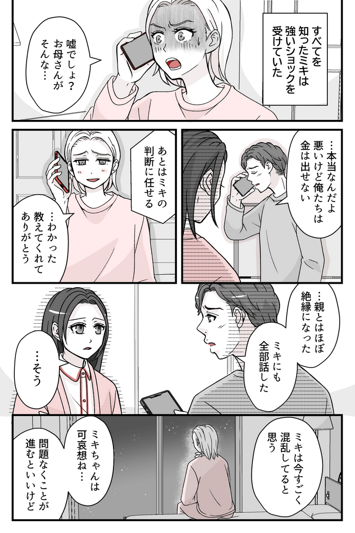 親とは絶縁状態になり、ミキは混乱……。