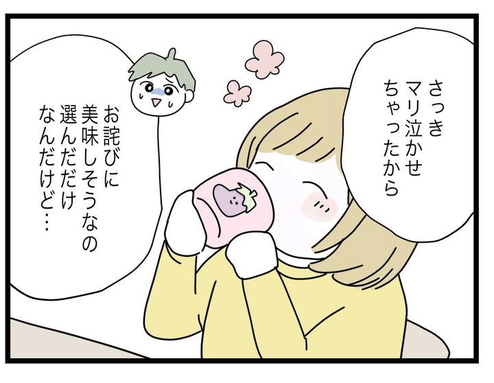 イヤイヤ期の娘の育児をワンオペでこなしている妻は、娘の機嫌を直すアイテムの牛乳を買い忘れていたことに気付きます。帰宅途中の夫におつかいを頼みましたが、夫が買ってきたのはミニサイズの豆乳。自分が買いに行くから娘を泣き止ませるよう夫に伝えると、夫はすぐに怖気づき、自分が牛乳を買いに行った方がいい、と提案してきました。