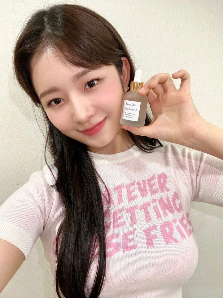 2022年3月に広告モデルに抜擢した韓国コスメブランド「ボナジュール」の“ローズステムセラム“とパチリ。「ボナジュール」では、舞台上のレイとは異なるナチュラルなヘアメイクを見れるのがうれしい♡