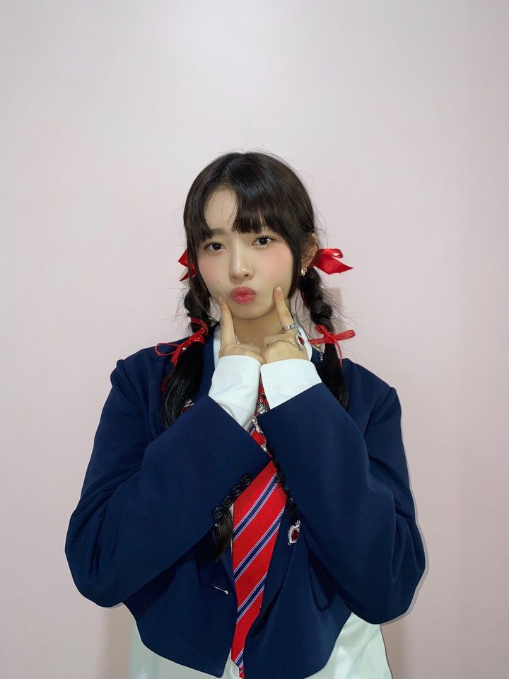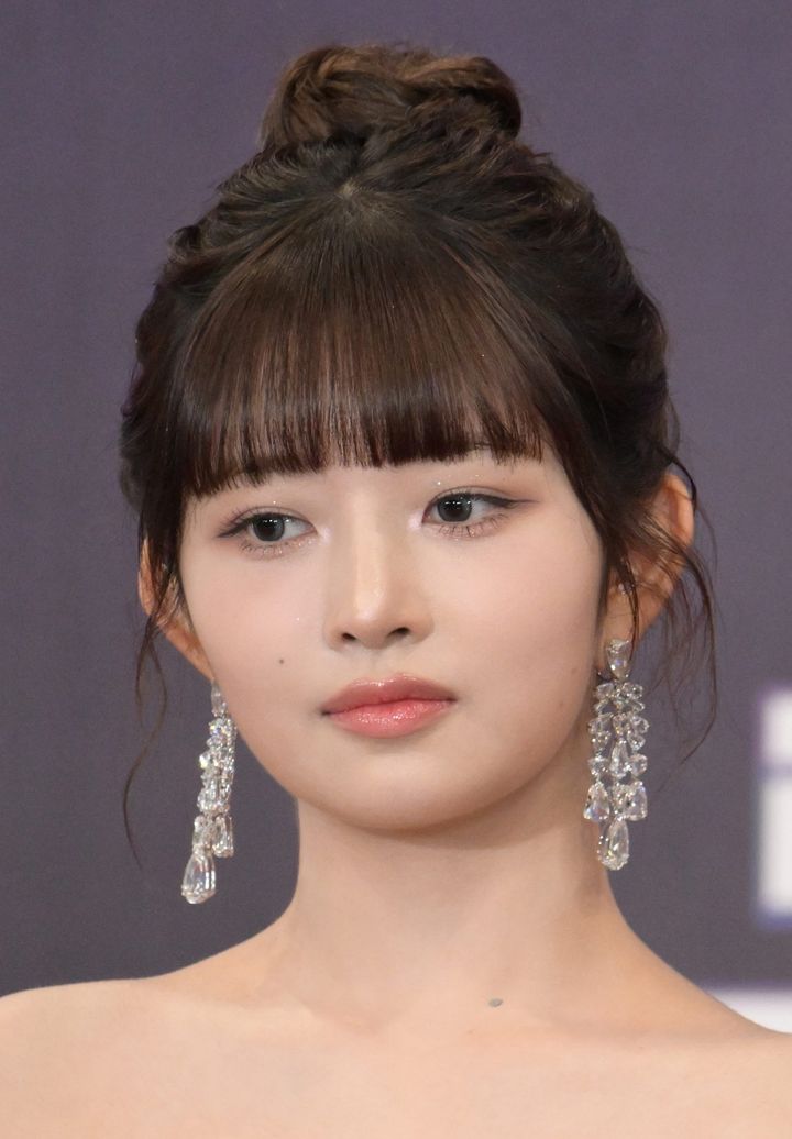 3rdミニアルバム『IVE EMPATHY』のリリース記者会見では、高めシニヨンヘアで登場。生え際のうぶ毛をナチュラルにアレンジし、フェイスラインの丸みを強調することで持ち前のベビーフェイスをさらに幼く見せて。
