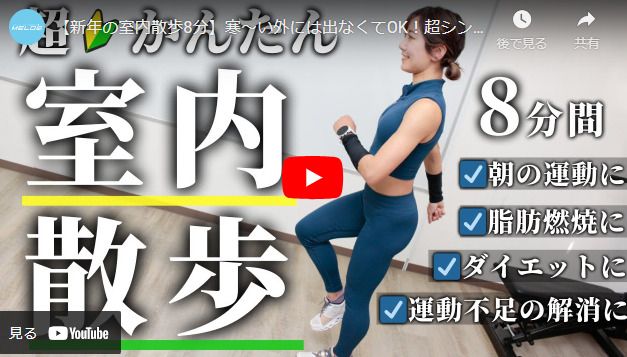 ※8の字の「ウォーキング」が7種目めに入っているトレーニング動画です