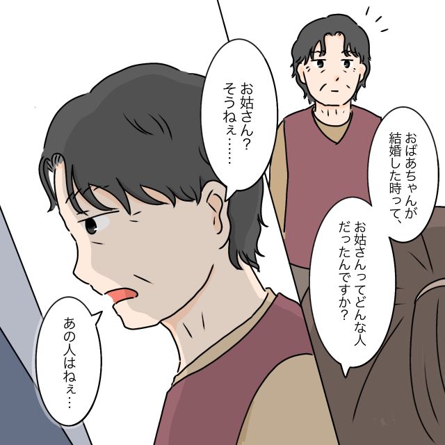 そして、「おばあちゃんが結婚した時って、お姑さんってどんな人だったんですか?」義祖母にたずねると、「お姑さん?そうねぇ・・あの人はねぇ・・」そう言って静かに呟きました。