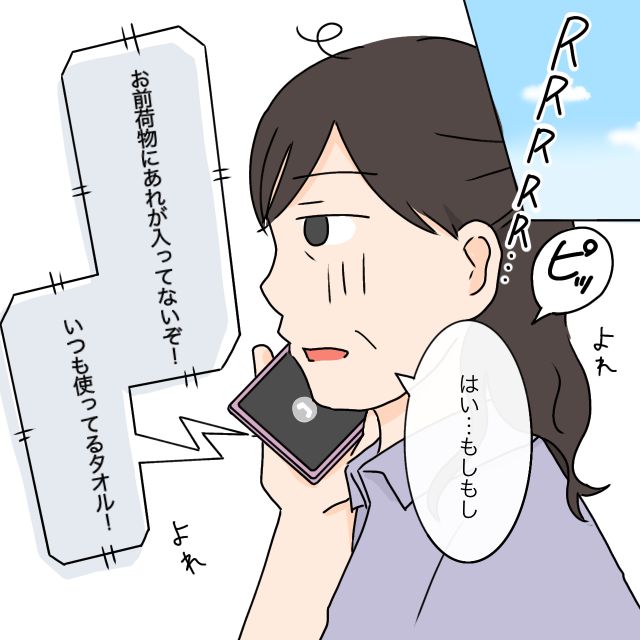 「はい・・もしもし」義母が疲れ切った姿で電話に出ると、「お前、荷物にあれが入ってないぞ!いつも使ってるタオル!」と案の定義父からの電話。