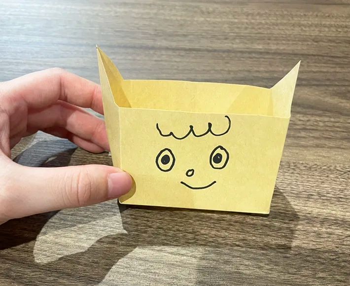 三角形の部分を底に貼りつければ、『鬼の豆入れ』の完成です!