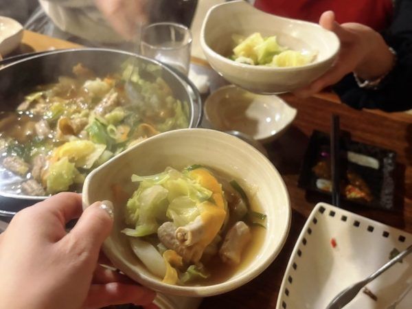テーブルに用意してあった鍋に火をつけ数分、いい感じに出来上がりました。