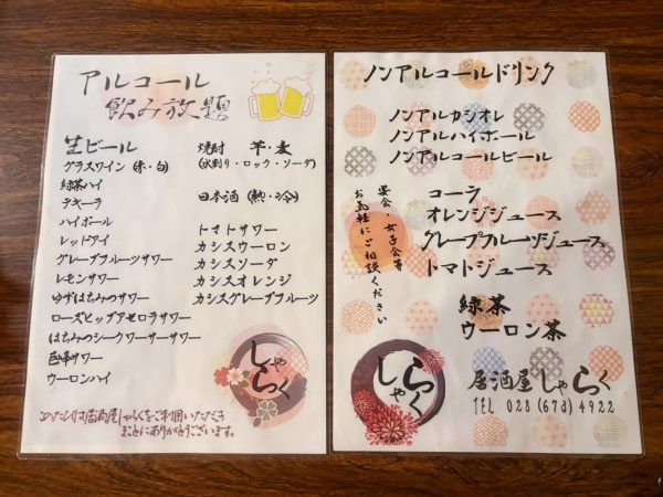今日は、宇都宮市下岡本にあります、愉快な多国籍居酒屋「しゃらく」の宴会メニューをご紹介します♪