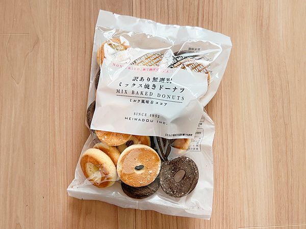 気になったのは「平和堂 訳あり無選別ミックス焼きドーナツ ミルク風味とココア」。ノンフライとのこと。コーヒーと一緒に食べたいです。