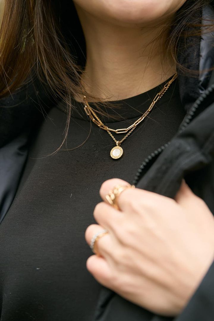 ノースフェイスのダウンはいかにもダウンらしいスポーティな1枚。かなりカジュアルなアイテムですが、黒なので幅広いテイストを受け止めてくれるところが気に入っています。今日はシルバーのスカートで華やかコーデにしてみました。派手めなものやちょっと女っぽ過ぎる?と思うアイテムも、この黒ダウンを羽織るとちょうどいいバランスに中和してくれます。上半身は黒で纏めたので、ゴールドのジュエリーを合わせて顔回りに光を。