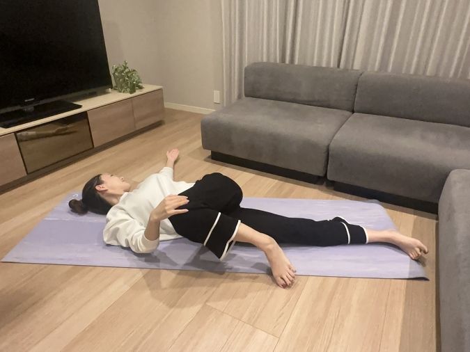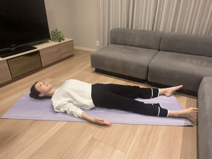 ただぼんやりと床に身を預けるだけで良いです。これにより、全身の疲労回復に繋がります。