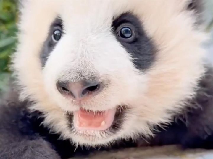 ドアップの赤ちゃんパンダさんの