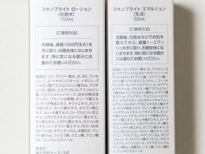 こだわりは水ではなく「ローズマリー葉水(整肌成分)」を最も多く配合していること。スキンケアの成分表示の順番は、配合率の高い順に並んでいますが、「スキンブライトローション」・「スキンブライトエマルジョン」ともに「ローズマリー葉水」が一番に表示されています。「スキンブライトローション」はこのローズマリー葉水を基材として 、グリチルリチン酸2Kや、浸透型ビタミンC誘導体(APPS)など美容液級の成分を20種配合。うるおいを与えてキメを整え、透明感のある肌へと導いてくれます。突出したキー成分がある、というよりも、配合された全成分の調和で肌のバランスをととのえてくれるイメージです。