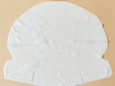 シート自体もよくある形ではなく、シーズ・ラボオリジナルで作られているのがポイント。顎下から額まで、丸っと全顔を美容液で満たせるような大きなシートになっています。そして「目もとも、口もともムラなくパックしたい」という欲張りな声に応えるように、目・口の開きは最小限に。こめかみ・鼻下・鼻のサイド・顎下に切れ目がついていて、その人の顔に合わせてフィットさせることができるディテールにもこだわっています。私の場合、額からスタートし、鼻下・鼻のサイドの切れ目を入れ、最後に横のフラップを顎下から上に引き上げるようにしてつけると、きれいに密着しました。