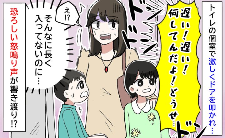 3. 「遅い!何してんだよ!」トイレの個室で激しくドアを叩かれ、怒号が…急いで出ると、立っていたのは!?