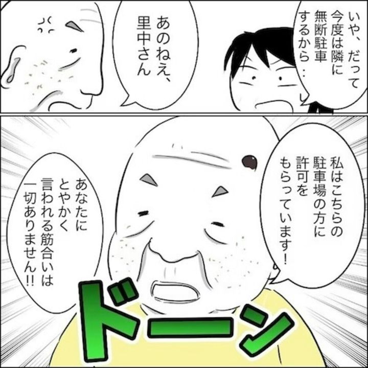 一筋縄ではいかない隣人に駐車をやめさせるべく、Aiさんはこのあと夫と協力して無断使用された住人について調べ、再び無断駐車をする隣人宅へ出向きます。