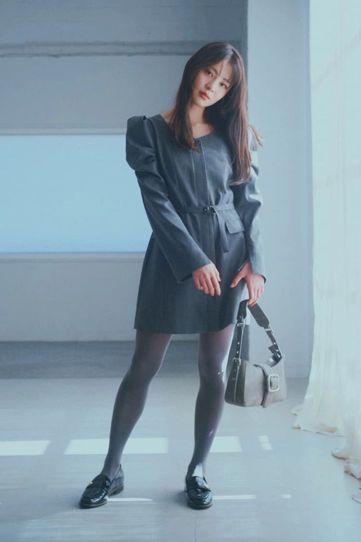 ジャケットワンピース 25,300円/EIMY ISTOIRE ルミネ新宿 ルミネ2 バッグ 7,480円/MOUSSY(バロックジャパンリミテッド) タイツ 1,210円/靴下屋(Tabio)ローファー 10,890円/RANDA