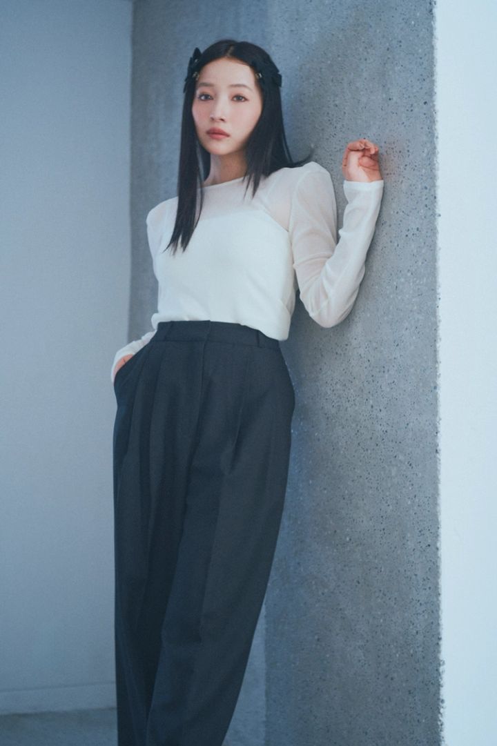 シアートップス 13,200円/EIMY ISTOIRE ルミネ新宿 ルミネ2 スラックス 7,900円/GENERAL IDEA(blaseout)リボンヘアピン 各4,400円/seven two three インナー/スタイリスト私物